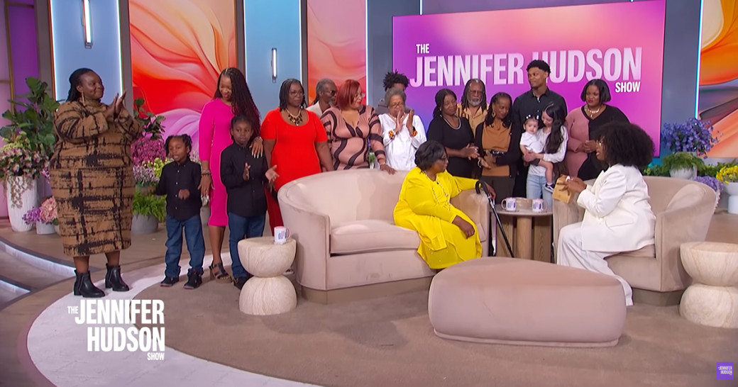 Затем Хадсон позвала в студию еще несколько членов семьи Марджи и познакомила их со зрителями. Телеведущая отметила, что с некоторыми из своих внуков женщина не знакома, и позвала в студию еще одного правнука Марджи и представила их друг другу.