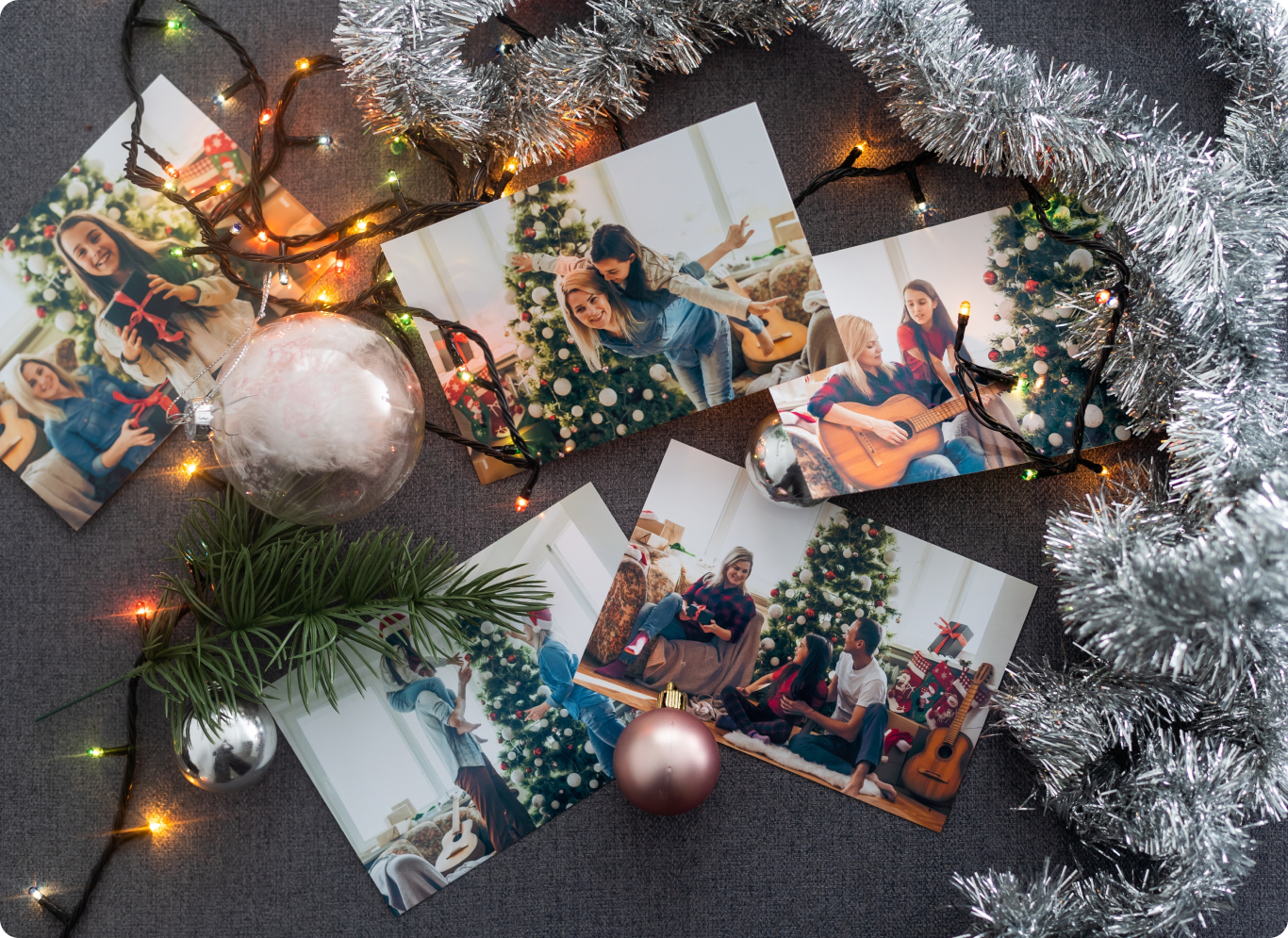 Уникальная елка получится из ваших семейных фотографий или открыток от друзей и родственников. Закрепите фото и открытки на стене, дополните гирляндой и несколькими стеклянными шарами. У этой елки один минус: вам будет жалко убирать ее сразу после праздников.
