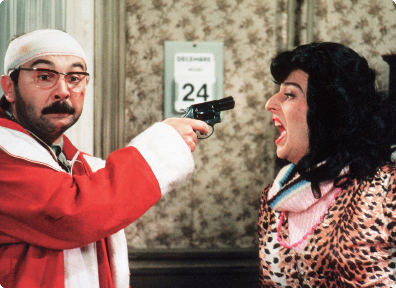 Сразу скажем, что эту комедию-гротеск точно лучше смотреть, когда дети уже крепко заснули. Здесь собран полный комплект: и насилие, и убийство, и секс по телефону и герой, рекламирующий стрип-клуб в костюме Деда Мороза.