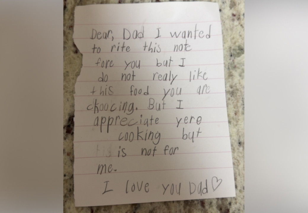 «Дорогой папа, я хотела написать тебе эту записку. Мне не очень нравится еда, которую ты для меня готовишь. Но я ценю, что ты готовишь, просто это не для меня. Люблю тебя, папа», — написала девочка.