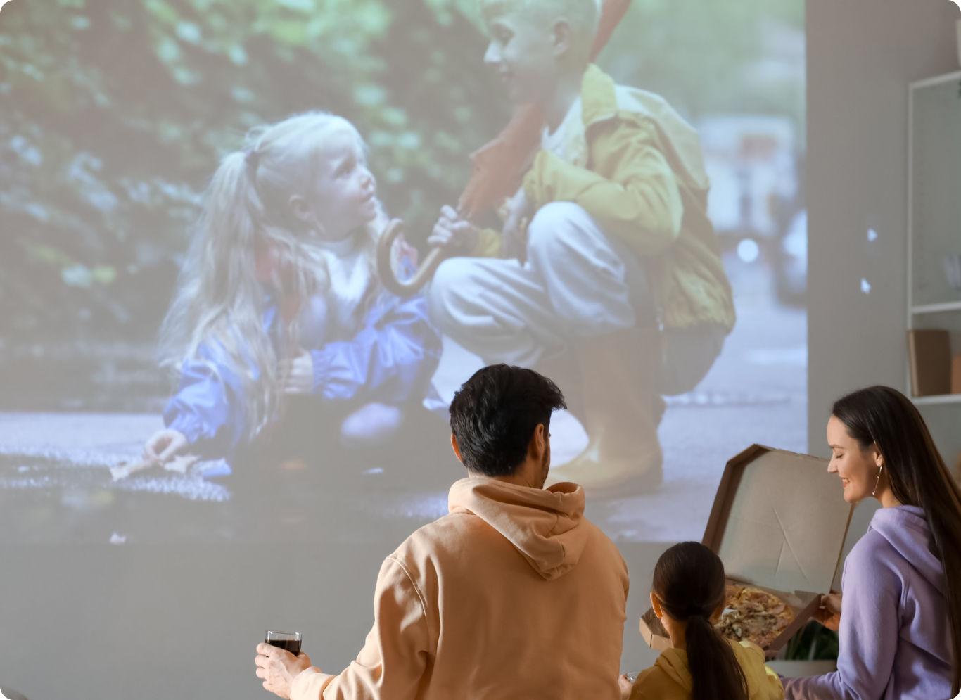 Закройте в комнате шторы, направьте проектор на стену и включите на телефоне презентацию или видео. Пододвиньте телефон ближе к стеклу или уберите его дальше — так вы сможете менять резкость изображения.
