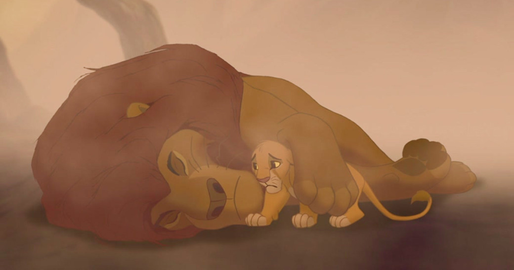 Обнаружив тело отца, Симба сначала пытается разбудить его. Так он проходит через стадию отрицания. На этом же этапе Симба испытывает вину: он считает, что именно его непослушание привело к смерти отца.