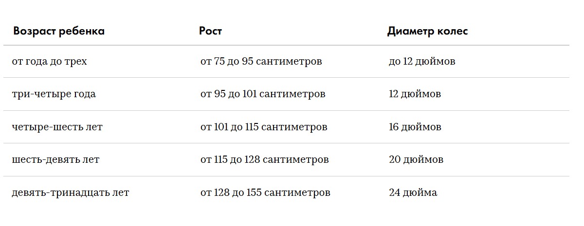 Подбирать велосипед надо по росту. Детские велосипеды выбираются не по размеру рамы, как взрослые, а по размеру колес. Каждой ростовке соответствует свой диаметр колес.