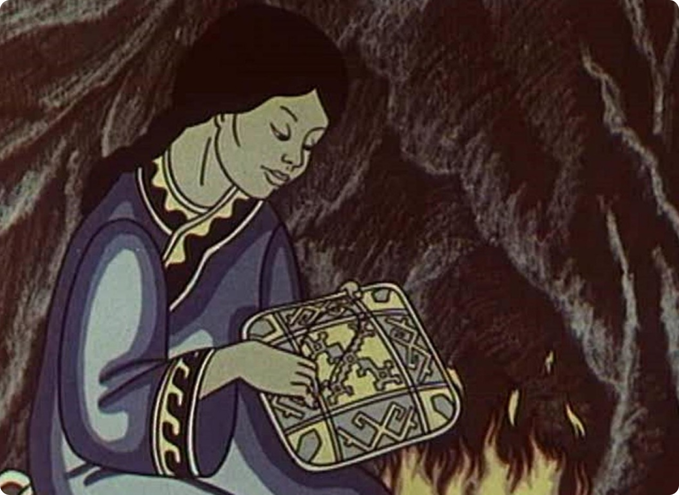 Пожалуй, это один из самых трагических советских мультиков. На дальнем Севере живет женщина, у нее трое детей, она ловит рыбу, собирает хворост, готовит и поет колыбельную песню своим детям (песня эта о том, что пока дети маленькие, мама носит их на руках, а когда дети вырастут, то будут сами носить на руках мать).
