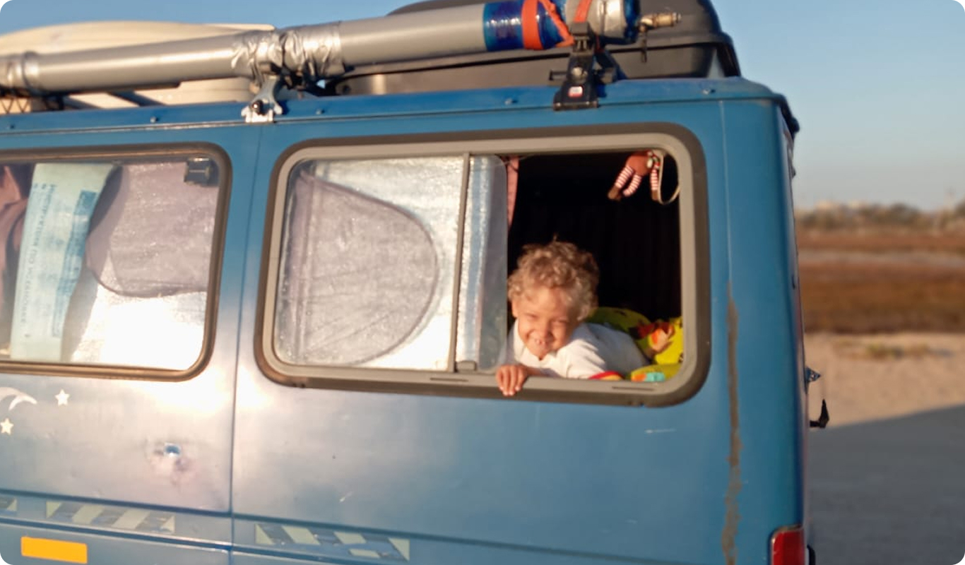 Радомир и его родители любят путешествовать. У них есть Ford Transit 1990 года, выкрашенный пылью дорог. Главное его богатство — просторная кровать, занимающая почти все пространство, которое выверено до сантиметра. Планировку пришлось перекраивать много раз, чтобы оставить место для инвалидной коляски. Она не складная, снимаются только колеса, а сам каркас довольно громоздкий. Поэтому уместить в машине удается только кровать. Чтобы сесть на нее, Максиму приходится пригибаться, а вот Радомиру — в самый раз!