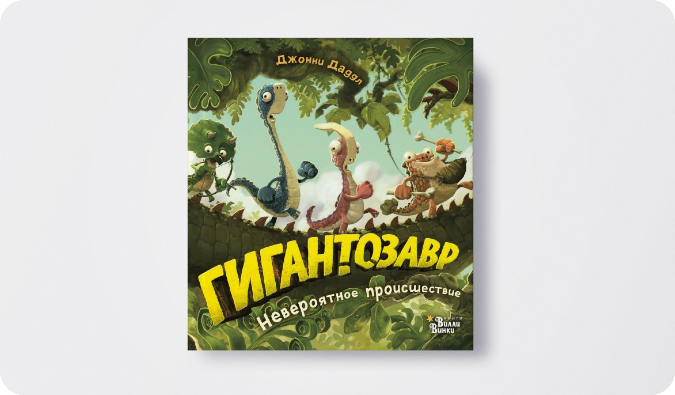 Что было сначала: книга или мультик? В случае с Гигантозавром первым было и то и другое. Сначала Джонни Даддл нарисовал свою знаменитую книжку-картинку, потом анимационная студия Cyber Group специально для канала Disney сняла по ее мотивам красочный мультсериал, после чего Фиби Жакорт создает уже целую серию книг, основанных на сценариях мультфильмов.