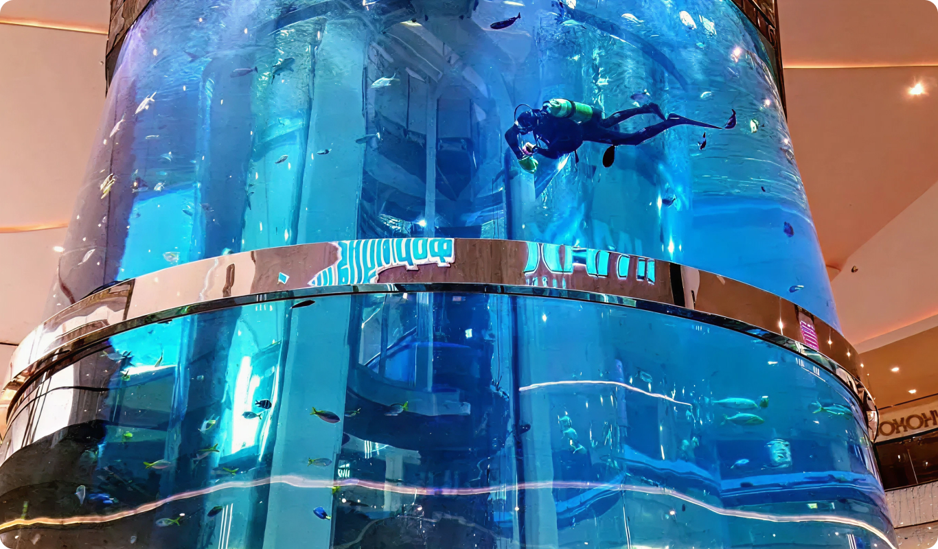 В ТРЦ Океания можно бесплатно совершить мини-экскурсию, которая займет всего 5-7 минут, но подарит незабываемые впечатления любителям подводного мира.