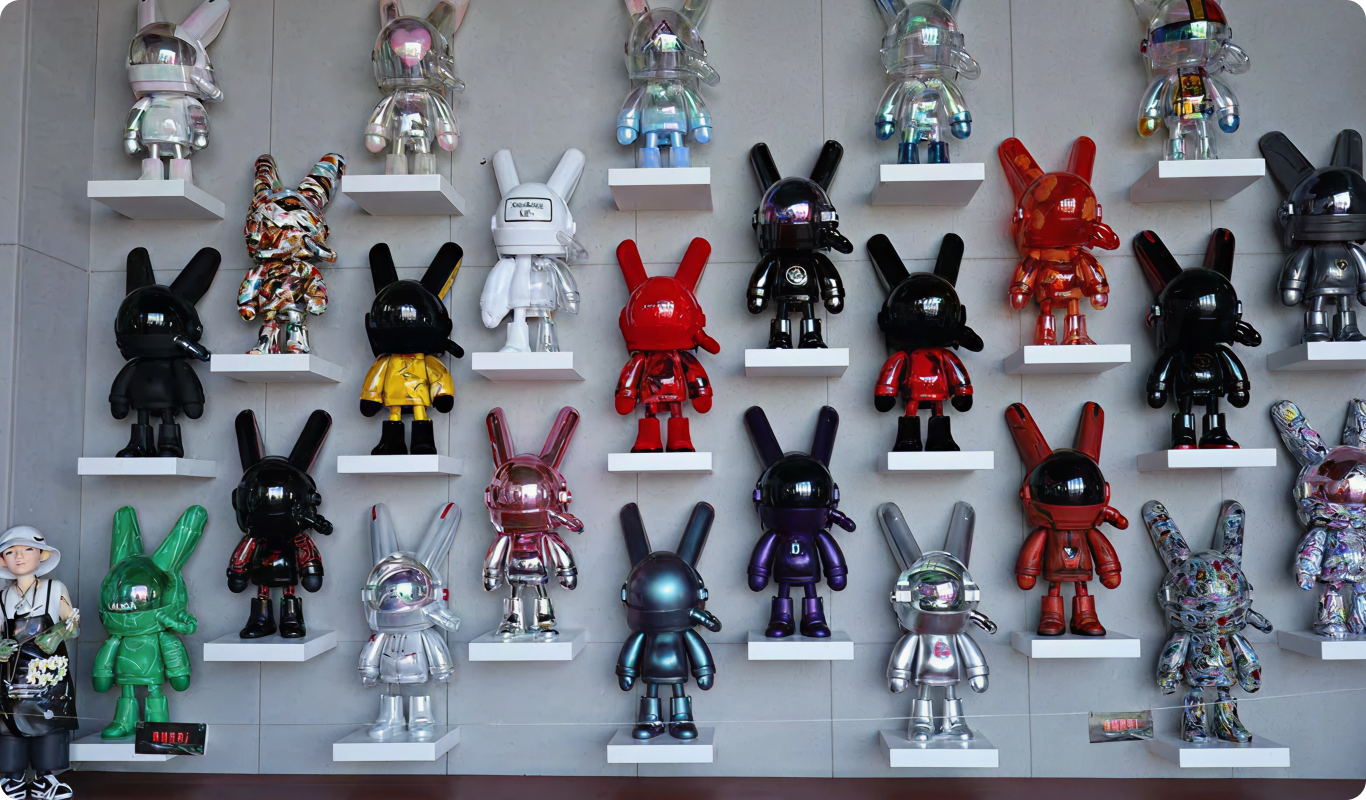 Выставочный проект объединяет произведения современных российских художников и коллекционные дизайнерские фигурки, представленные авторами и галереями из разных стран. Экспозиция регулярно обновляется, при этом значительная часть объектов выполнена вручную и выпущена в единственном экземпляре либо ограниченным тиражом.