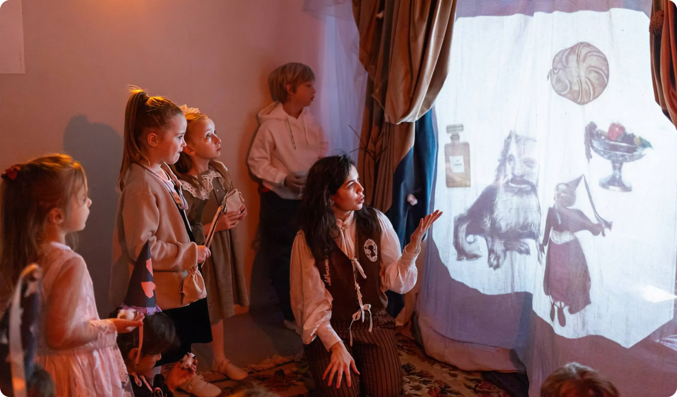 Представление будет интерактивным: вам предложат погрузиться в мир ароматов, вкусов и фактур, по-новому открывая для себя каждое из ощущений. Помимо этого вам предложат сочинять баллады и исполнять их под живую лиру и лютню, принять участие в мастер-классах по изготовлению рыцарских гербов, волшебных палочек и средневековых головных уборов. А завершится все это чаепитием с пирогами за длинным дубовым столом, теплой семейной мини-фотосессией и подарками.