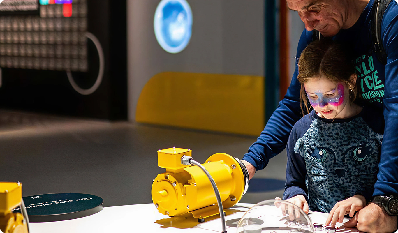 А в зоне «Постижение космоса» вы попадете как бы на «орбитальную станцию» с тематическими отсеками, благодаря которым можно отправиться в межпланетное путешествие, посетить лунную лабораторию, узнать об истории Большого взрыва и свойствах вакуума, понаблюдать за движением космических тел из телескопа, спасти Землю от метеоритного дождя, пообщаться с инопланетным разумом и произвести запуск ракеты.