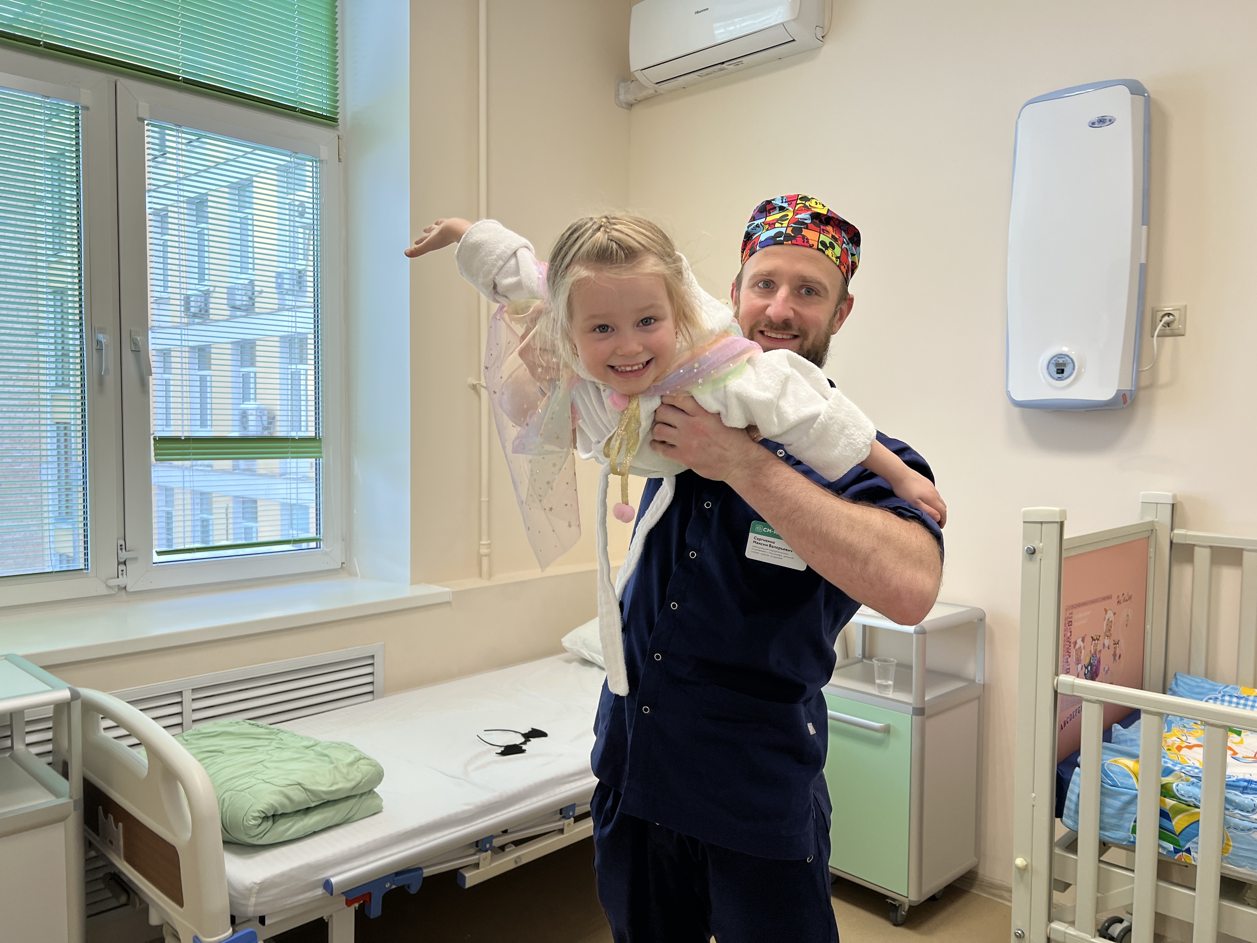 В день операции семья приезжает в клинику, оформляется, потом поднимается в палату. Педиатр измеряет рост, вес и осматривает ребенка — дает окончательный допуск. Затем приходит анестезиолог, который уже знаком и с ребенком, и с его анализами. Он еще раз убеждается, что операцию можно проводить — и дает команду для начала.