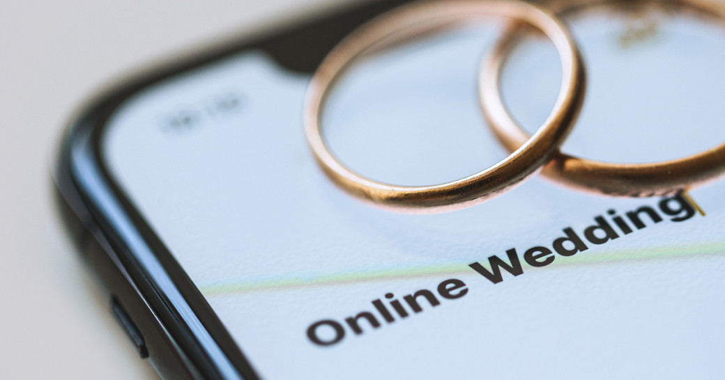 Молодожены общались с гостями по видеосвязи.