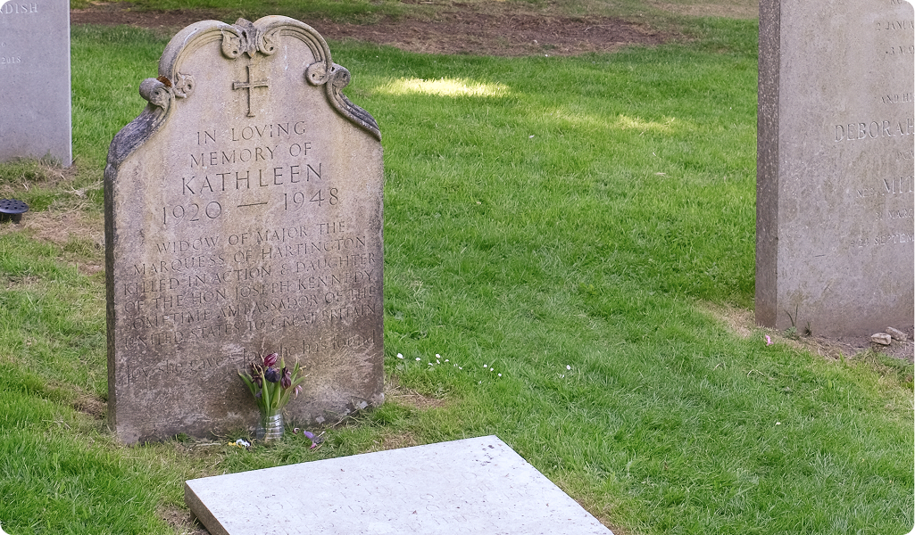 Надгробный камень Кэтлин Кеннеди, сестры президента США Джона Ф. Кеннеди, кладбище церкви Эденсор, Дербишире | Фото: peter g lawson | Shutterstock | Fotodom