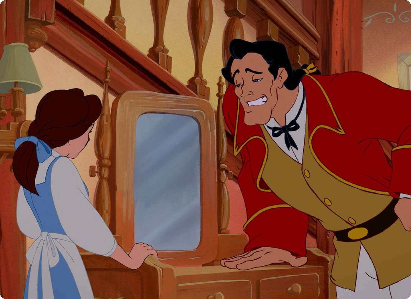 Гастон — сталкер, но, это слово не имеет ничего общего с персонажем братьев Стругацких. Сталкинг — это нежелательное навязчивое преследование одного человека другим, одна из форм психологического насилия. Гастон буквально не дает Белль прохода несмотря на то, что девушка недвусмысленно отшила его. Очевидно, что ему наплевать на ее чувства. Более того: он явно дает понять, что он — будущий семейный тиран, которому для воплощения своих надменных планов не хватает только одного — покорной красавицы-жены. Правда, действует он слишком примитивно и топорно — явно не от большого ума.