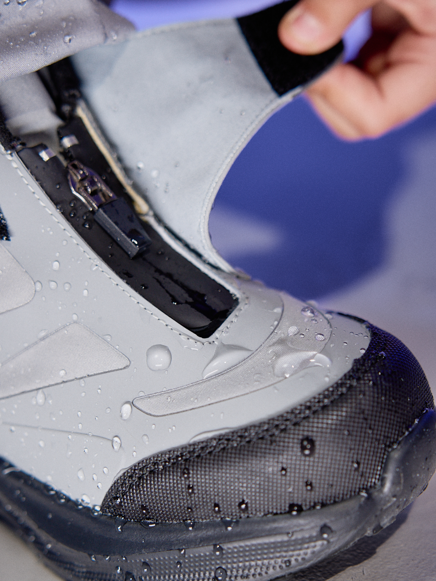 Благодаря легкости софтшелла, ботинок весит всего 173 грамма — для демисезонной обуви цифры почти невероятные. А влагостойкость этой обуви подтверждена специальными тестами — ботинки выдерживают погружение в воду в течение нескольких минут.